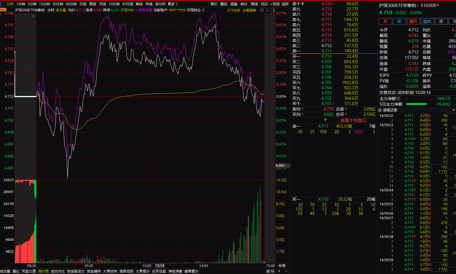 看图,下午开始,他们上班了,开始搞沪深300ETF。不知道给谁了。 农行作为大权重,收到影响