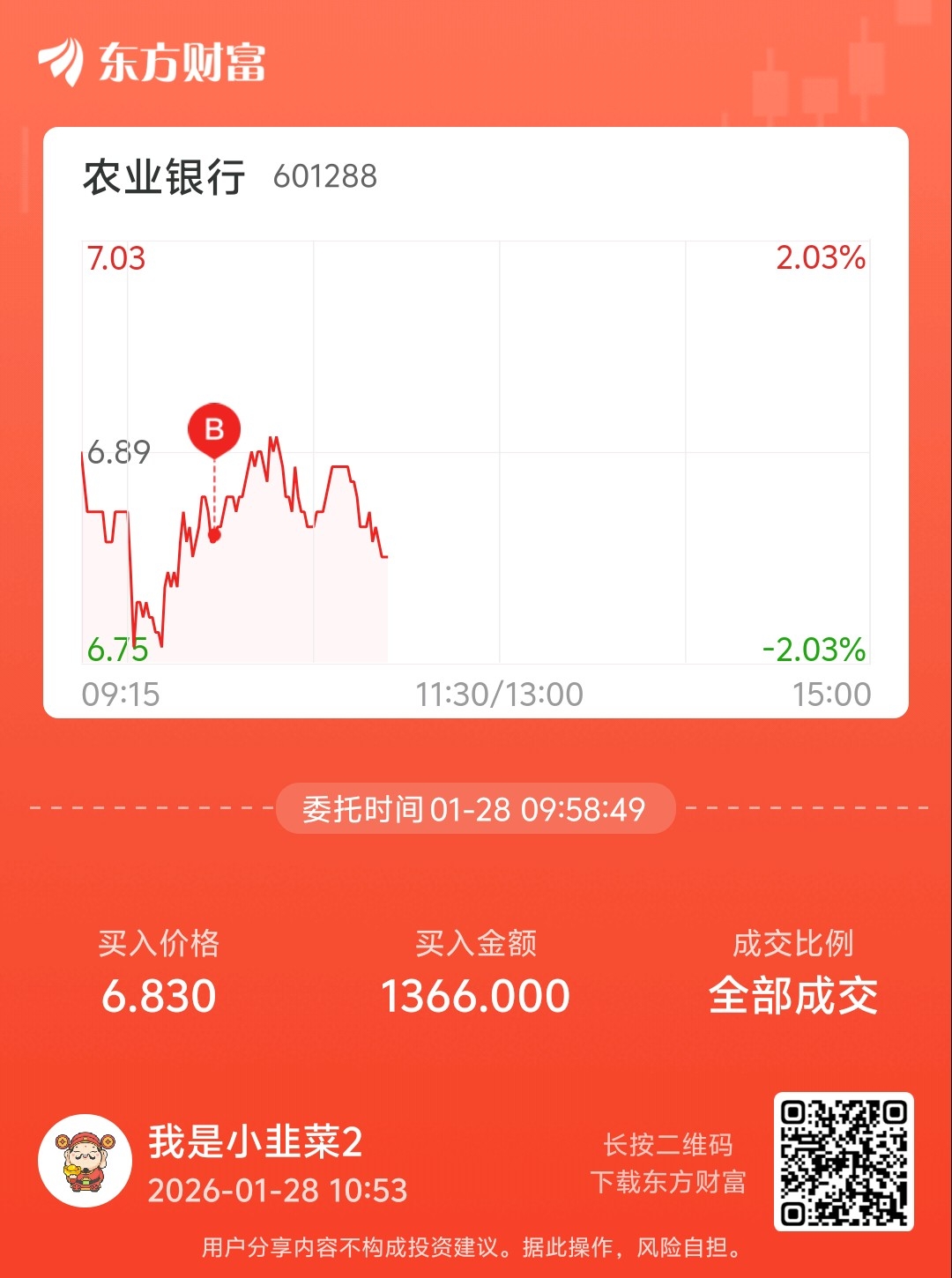 $农业银行(SH601288)$ 烂泥扶不上墙#实盘记录# 服了这个老六了。