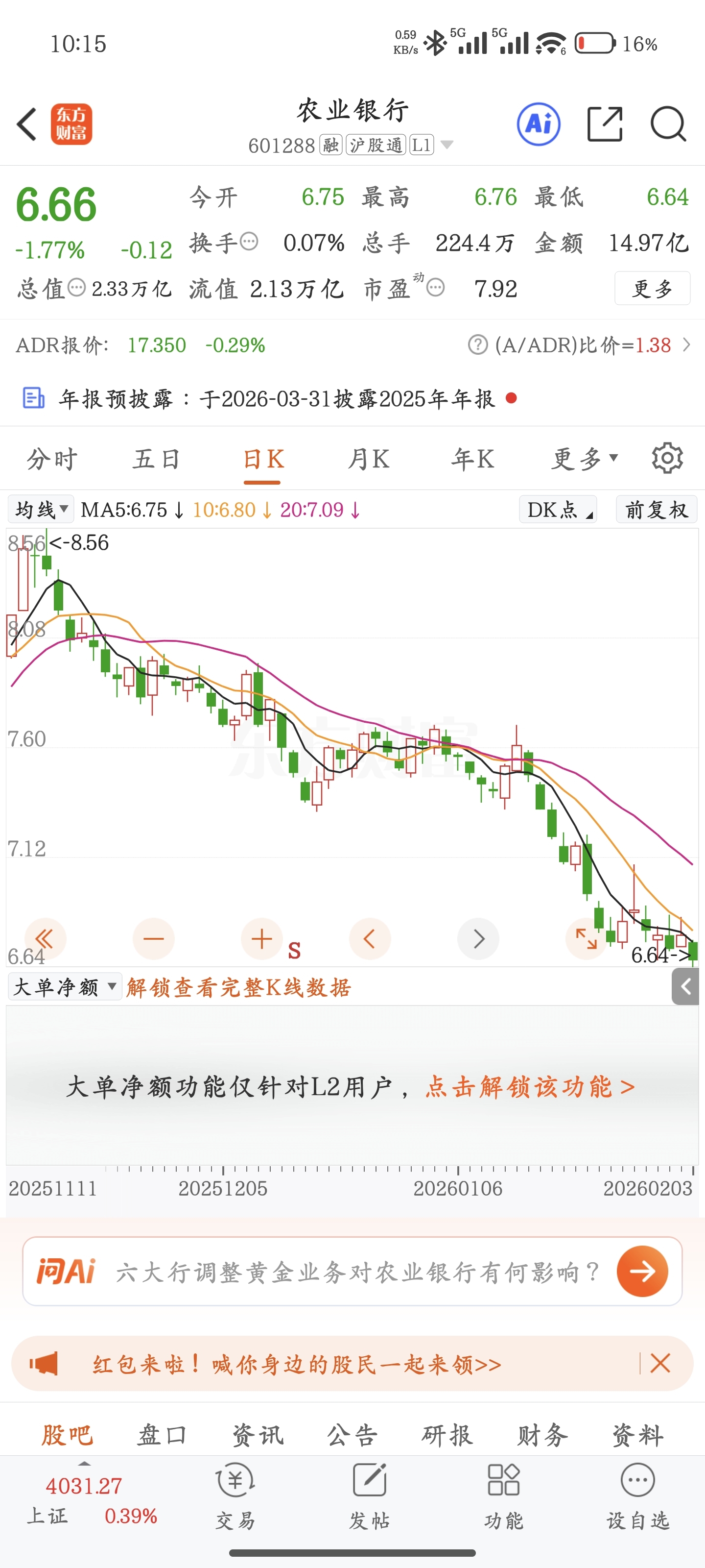 $农业银行(SH601288)$ 就农行这走势,就服那些越跌越加仓的