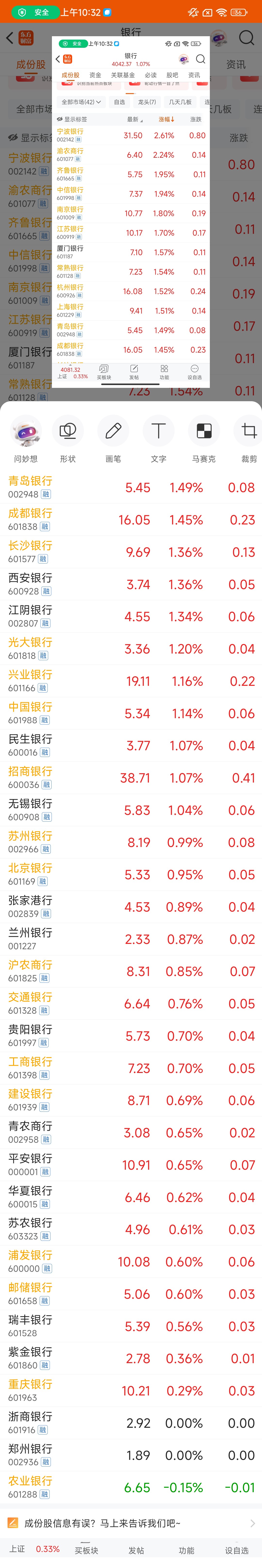 $农业银行(SH601288)$ 银行板块农萎达垫底了,现在大行表现都很差,小银行表现好