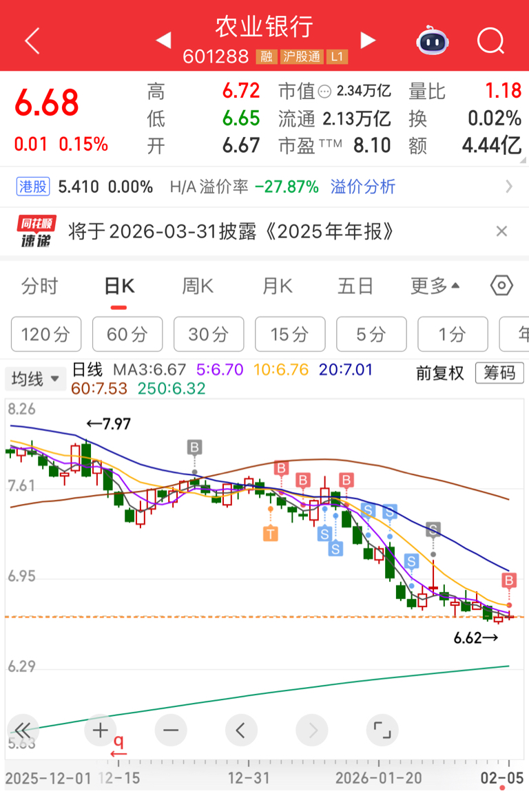 我来给大家接盘了,现持仓工行50%,农行50%