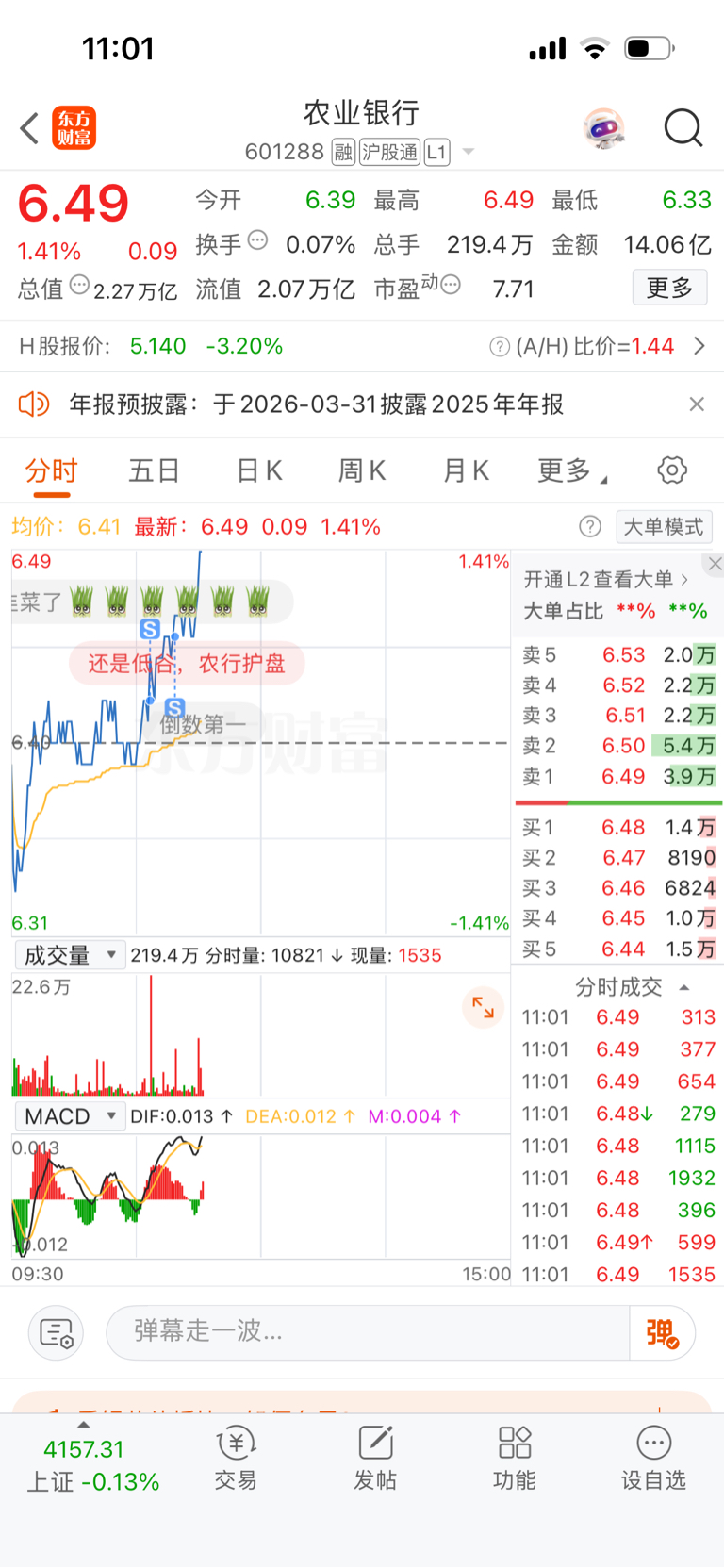 $农业银行(SH601288)$ 一卖就涨