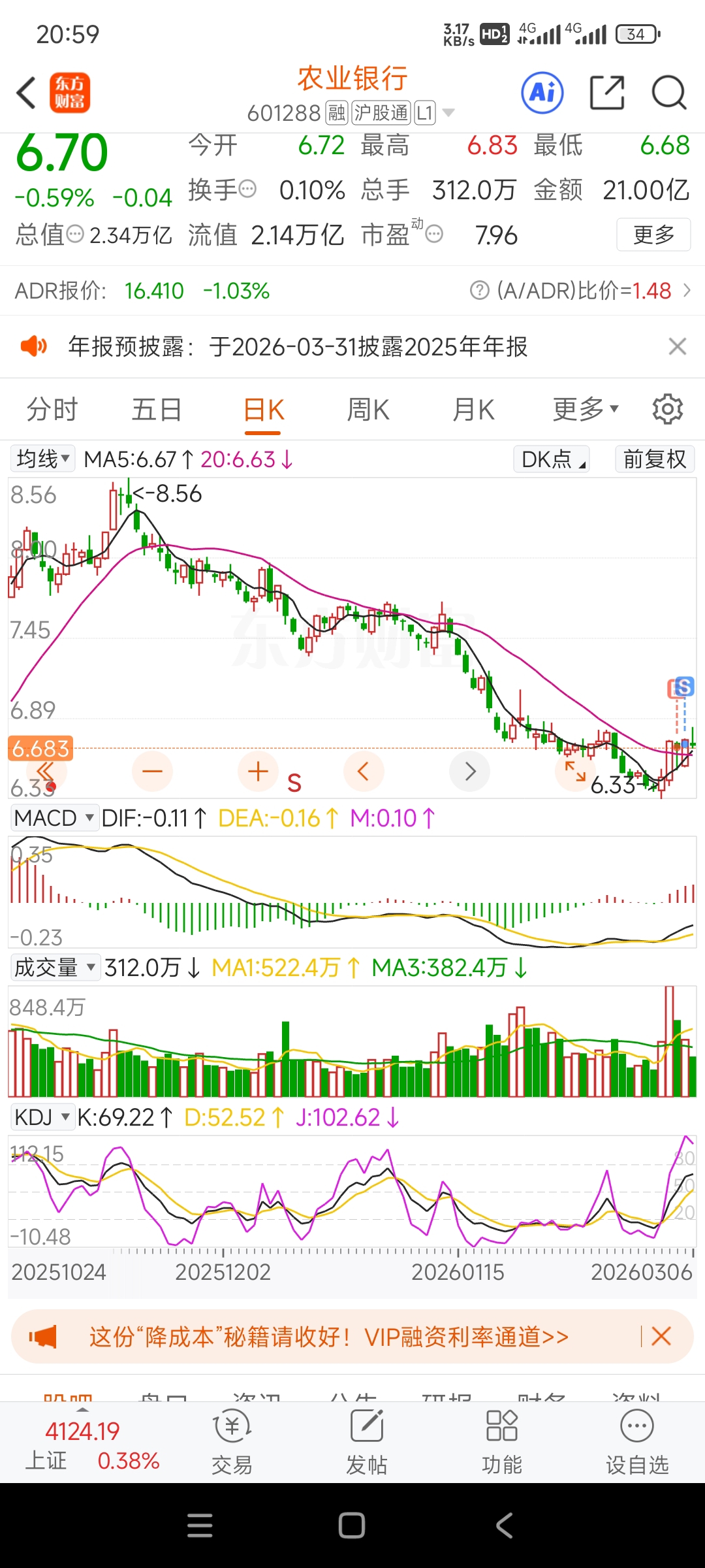 $农业银行(SH601288)$ 逻辑上,还是看空指数,利多银行,但这几天盘面走势还是没有交易这个逻辑,继续等待,事物发展演进需要时间,当然也有可能是错的。