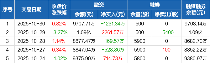 青岛港:融资净偿还1231.34万元,融资余额9707.71万元(10-30)