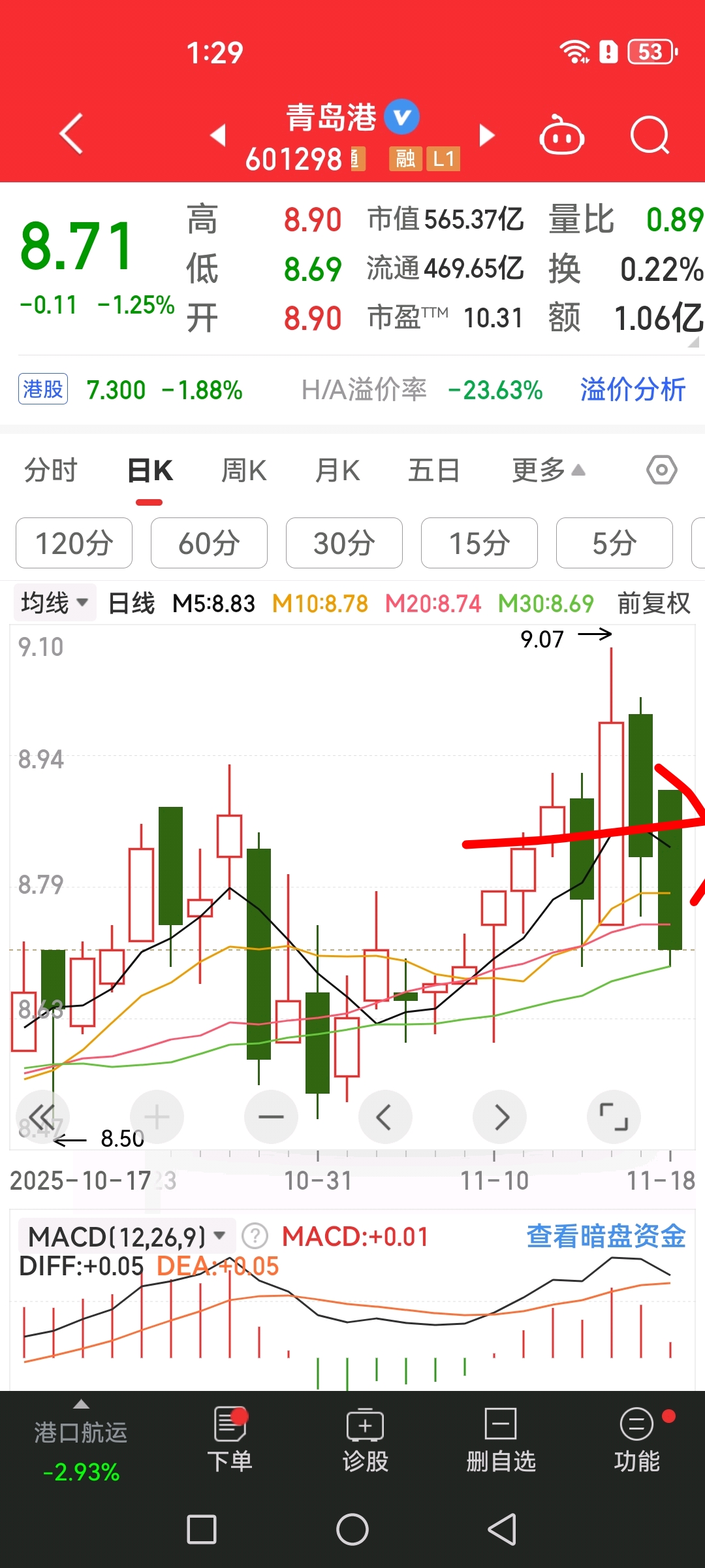 $青岛港(SH601298)$ 下午会拉起来到8.8