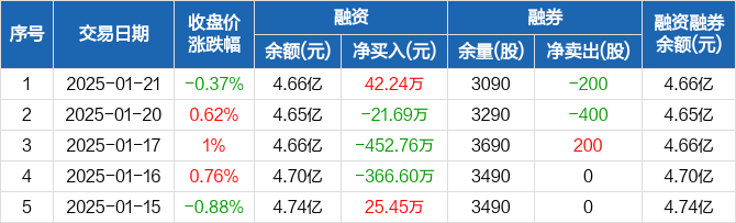 骆驼股份:融资净买入42.24万元,融资余额4.66亿元(01-21)