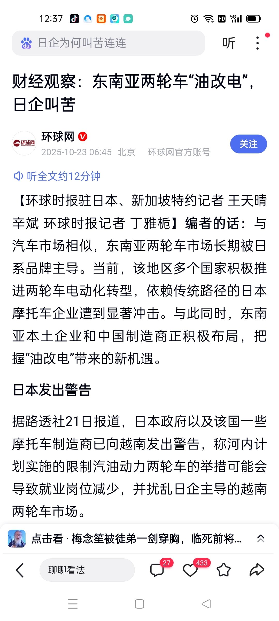 $骆驼股份(SH601311)$ 最新消息:东南亚未来三年,油改电,电动摩托车市场规模高达5~8亿辆