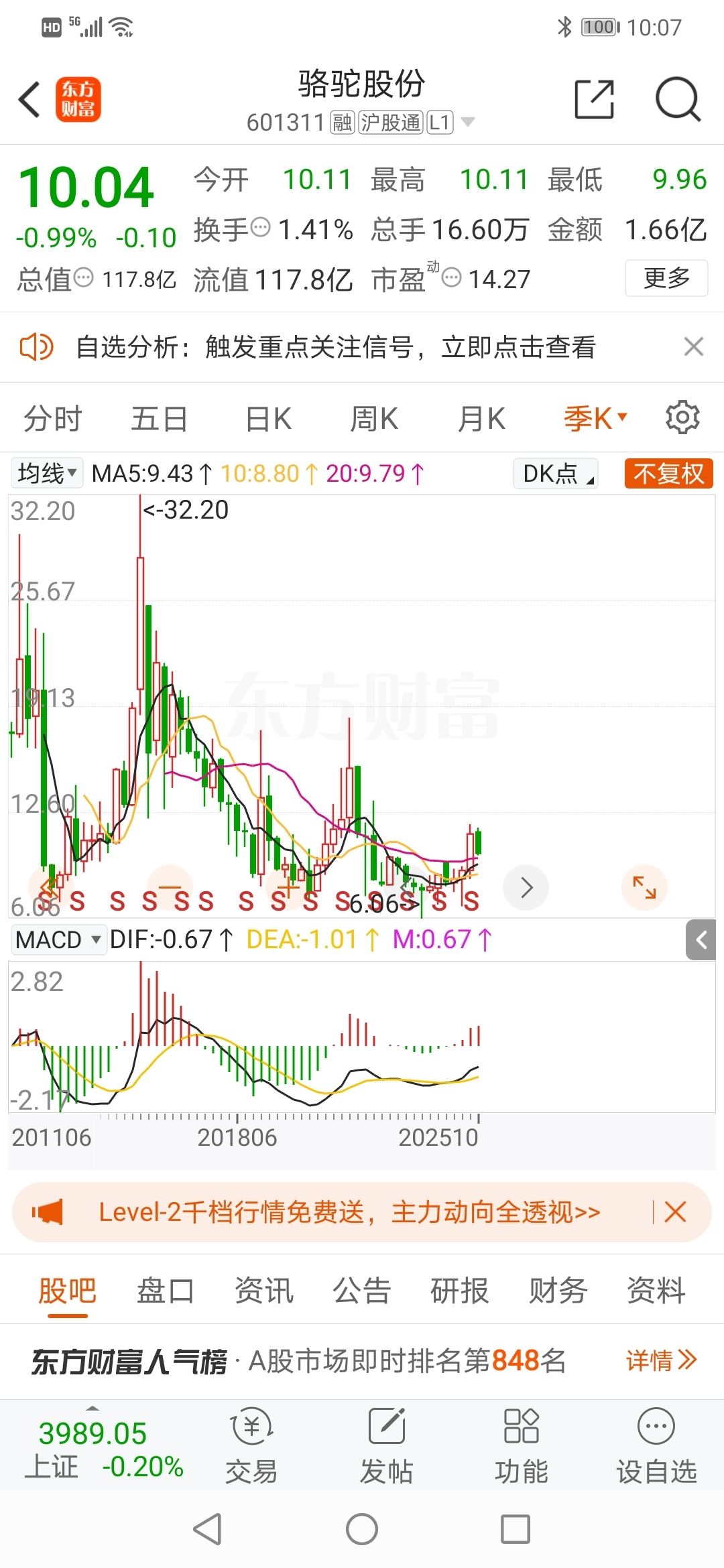 $骆驼股份(SH601311)$ 3个季度赚6个多亿跌得比亏6个亿似的