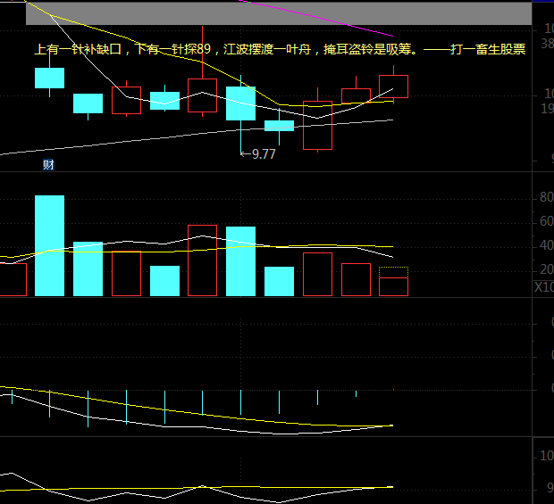 上有一针补缺口,下有一针探89,江波摆渡一叶舟,掩耳盗铃是吸筹。——打一股票名
