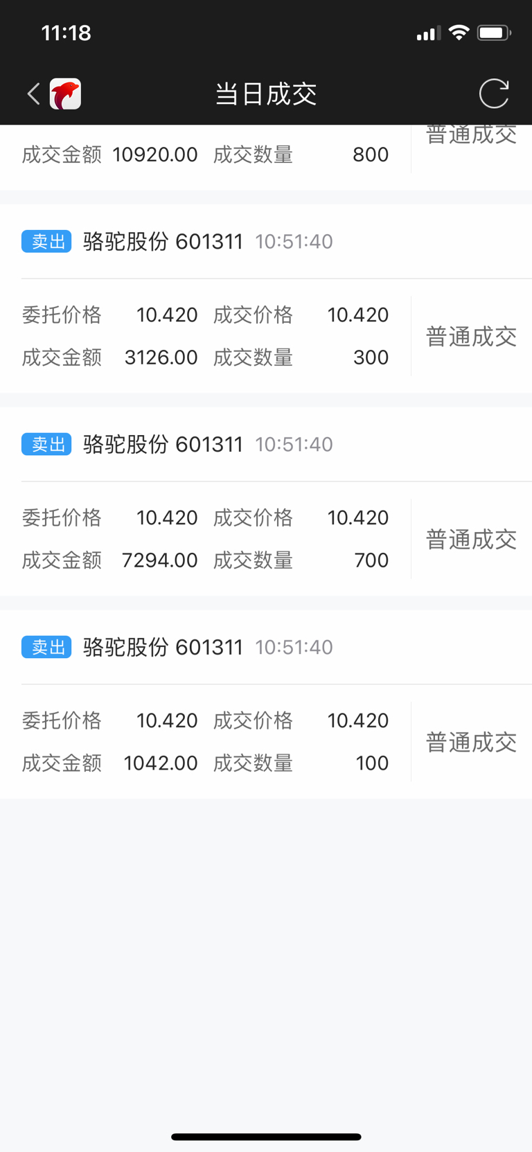 $骆驼股份(SH601311)$ 10.42完美抛售