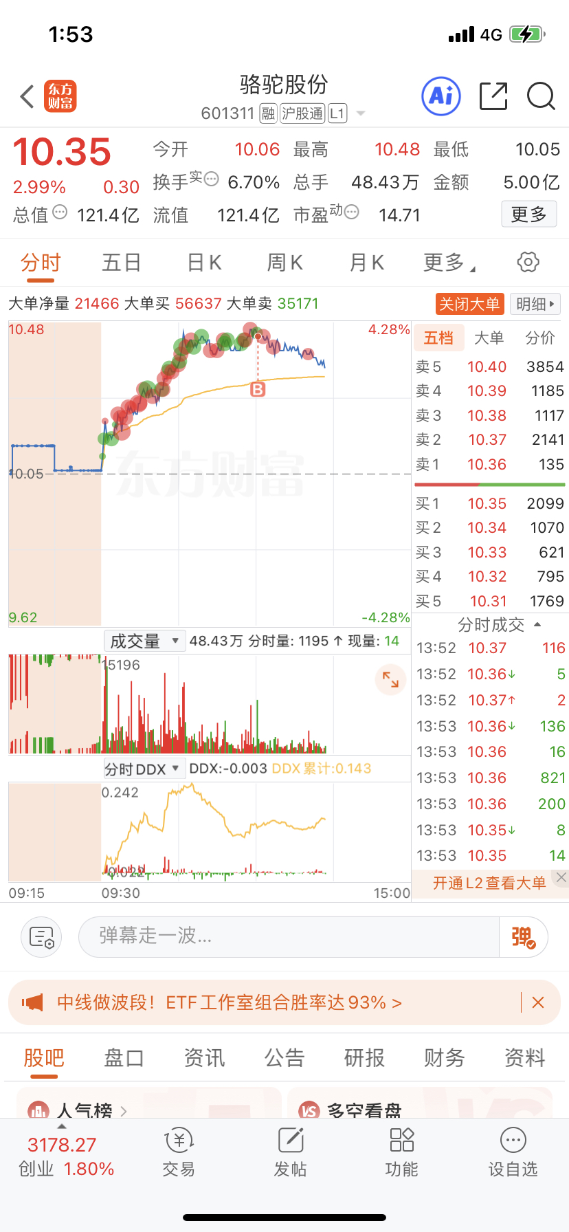 $骆驼股份(SH601311)$ 服了,进来就吃面,哎
