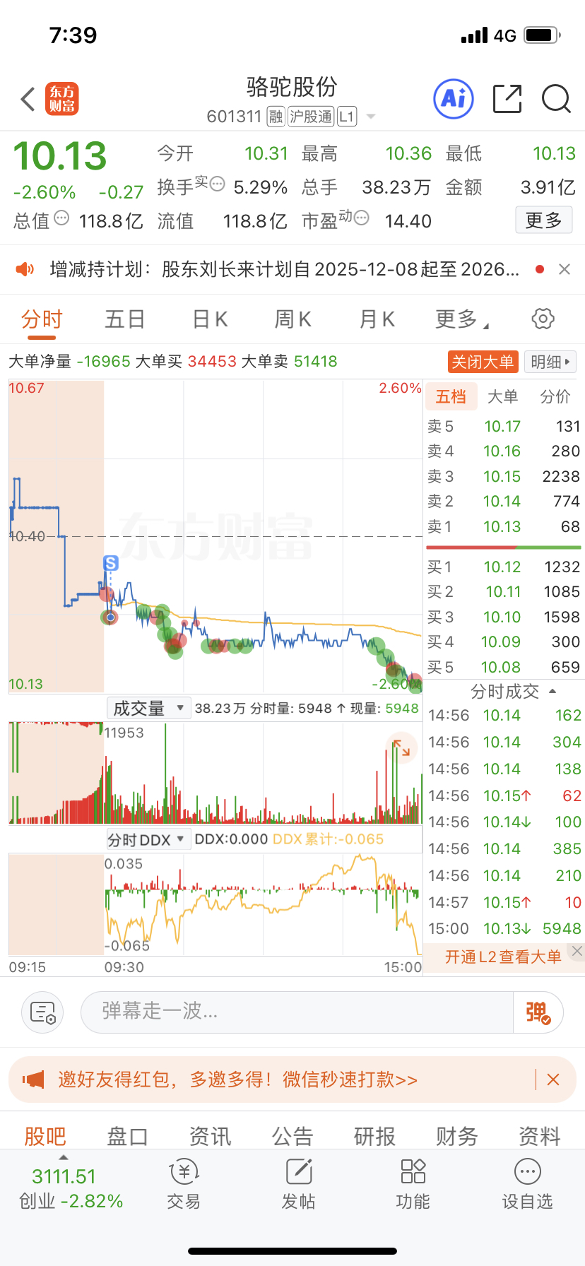 $骆驼股份(SH601311)$ 虽然今天又割肉了,看了钱多多说的话一下子清醒了,我决定下星期买回来。谢谢!