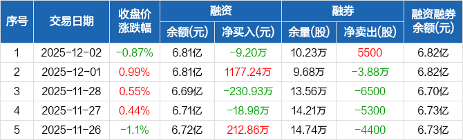 骆驼股份:融资净偿还9.2万元,融资余额6.81亿元(12-02)