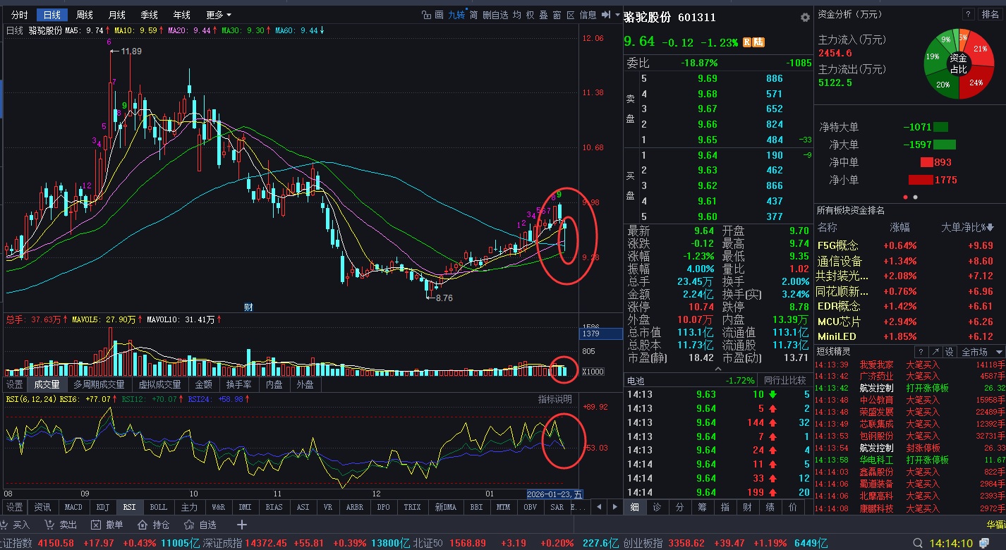 技术分析:骆驼股份K线形成长下影线,就是加仓的信号!早盘我9.47元提早加仓
