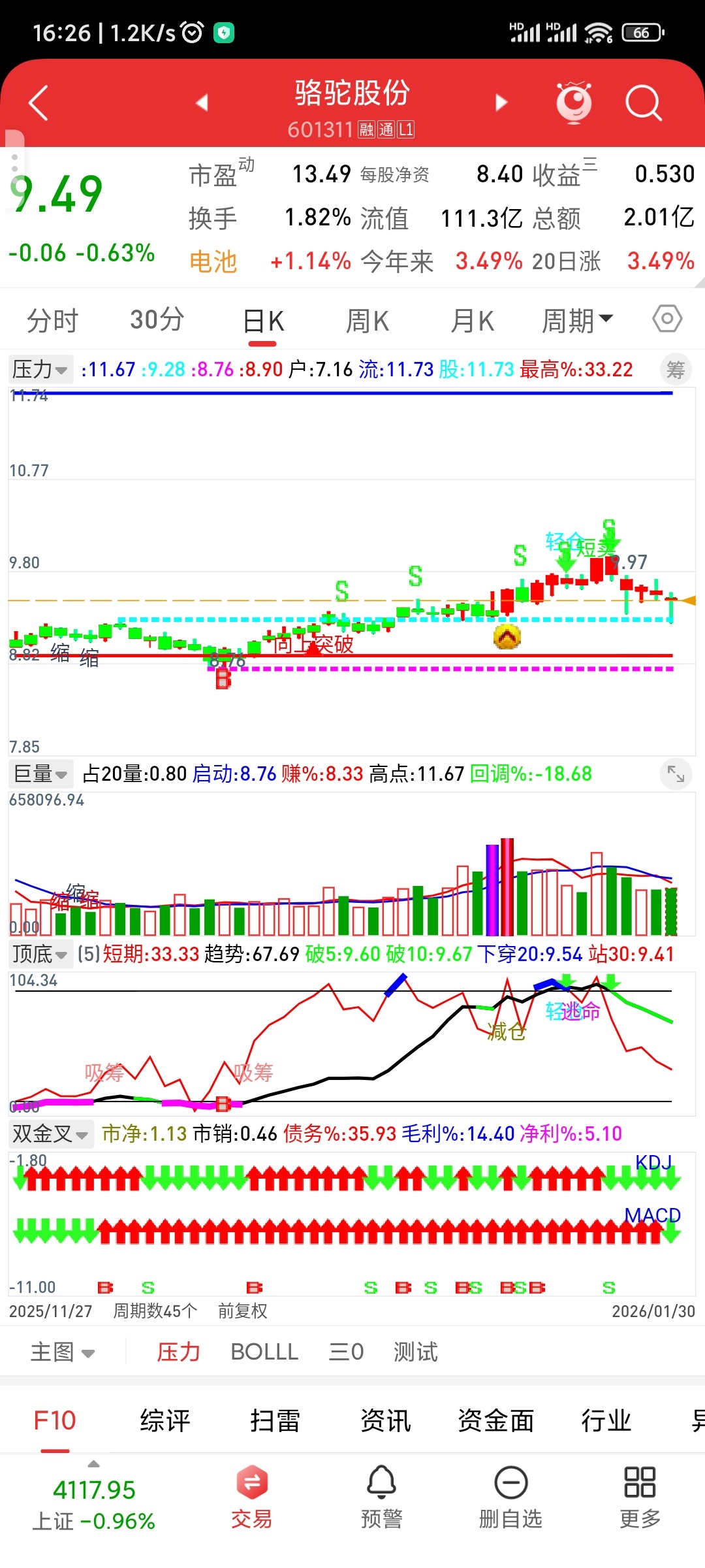 强力支撑位:9.28元!