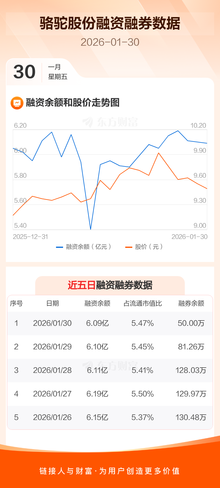 交易所最新数据显示,骆驼股份于2026年1月30日获融资买入2411.16万元,融资偿还2539.48万元,当日融资净偿还128.32万元。目前,该股融资余额6.09亿,占流通市值比例为5.47%。