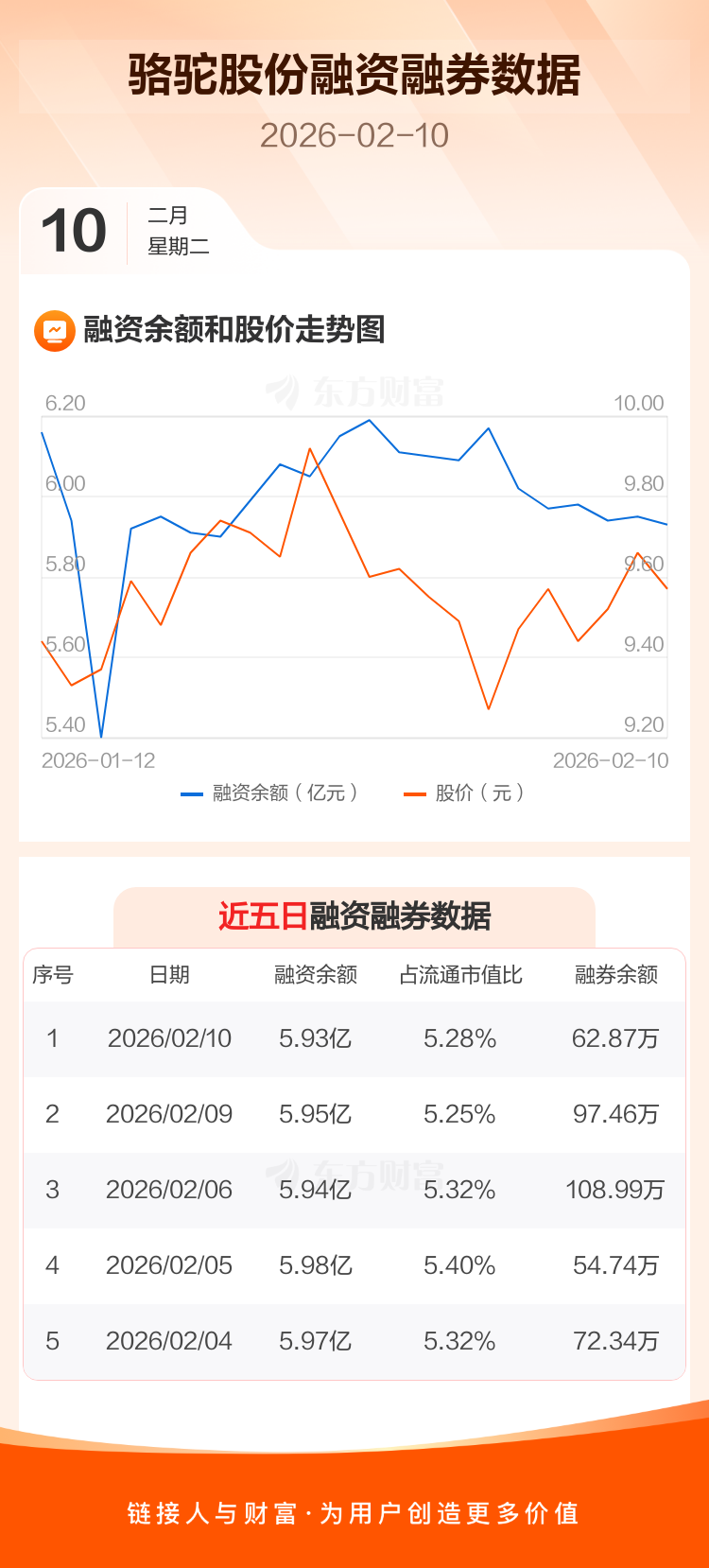 交易所最新数据显示,骆驼股份于2026年2月10日获融资买入1183.75万元,融资偿还1324.05万元,当日融资净偿还140.29万元。目前,该股融资余额5.93亿,占流通市值比例为5.28%。