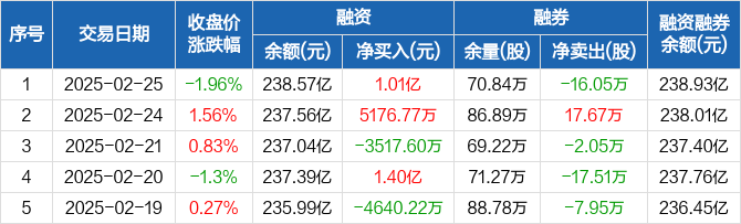 中国平安:融资净买入1.01亿元,融资余额238.57亿元(02-25)