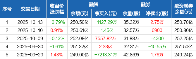 中国平安:融资净偿还1127.29万元,融资余额250.5亿元(10-13)