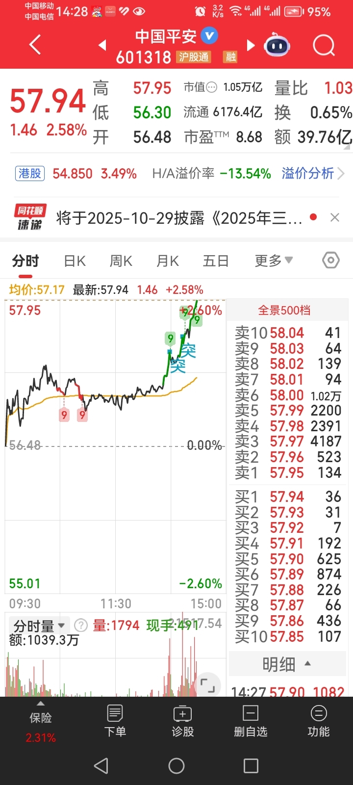 $中国平安(SH601318)$ 再次给了获利了结高溢价机会。