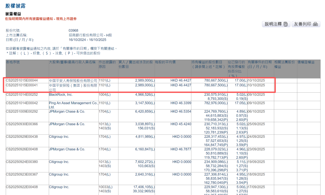 上海证券报记者近日统计发现,10月以来,中国平安及旗下子公司平安人寿买入招商银行H股、邮储银行H股,合计斥资约1.73亿港元。
