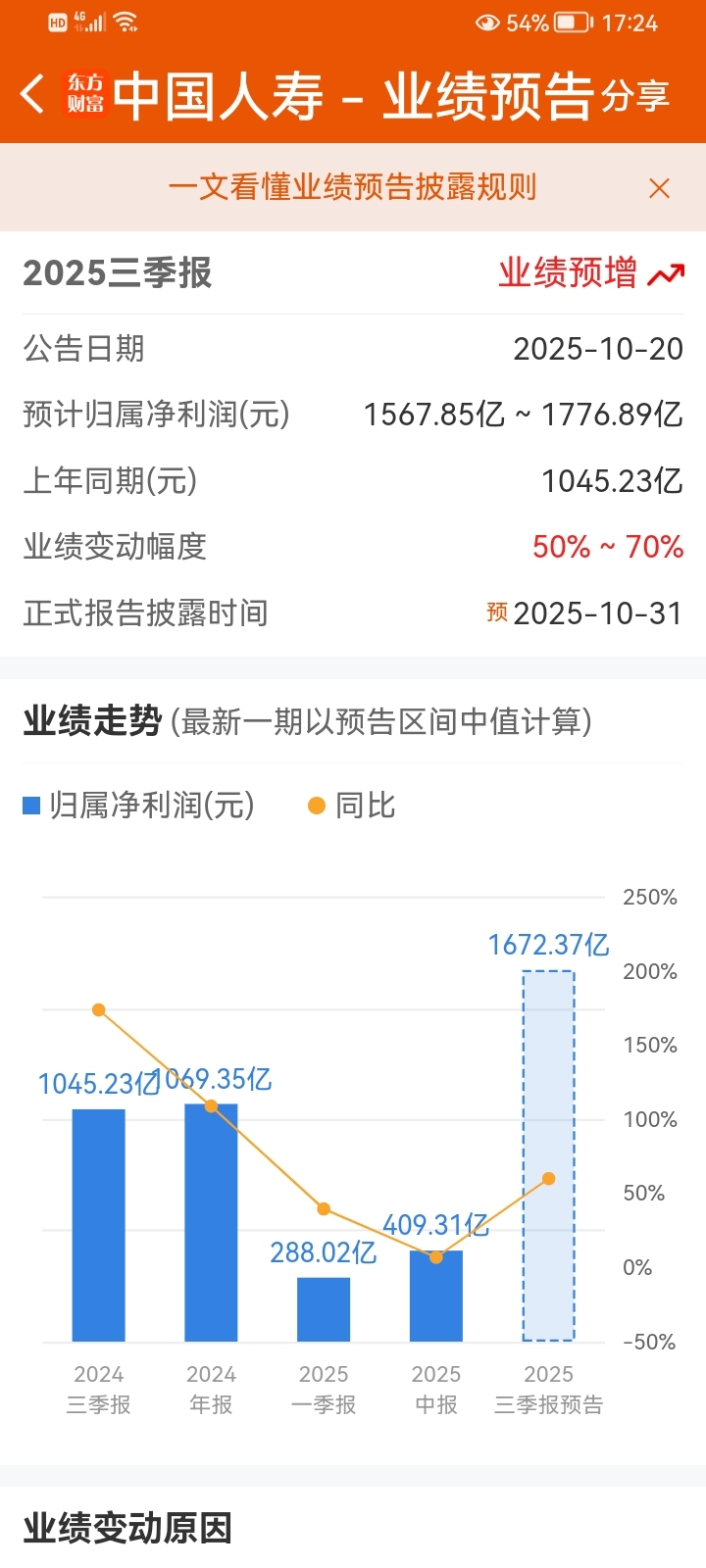 $中国平安(SH601318)$ 多么期待中国平安也预告:预计中国平安2025年三季度预增50%--70%