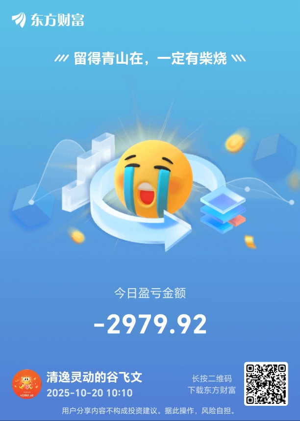 今天尽然是亏损的,投资确实很难,坚持就是胜利