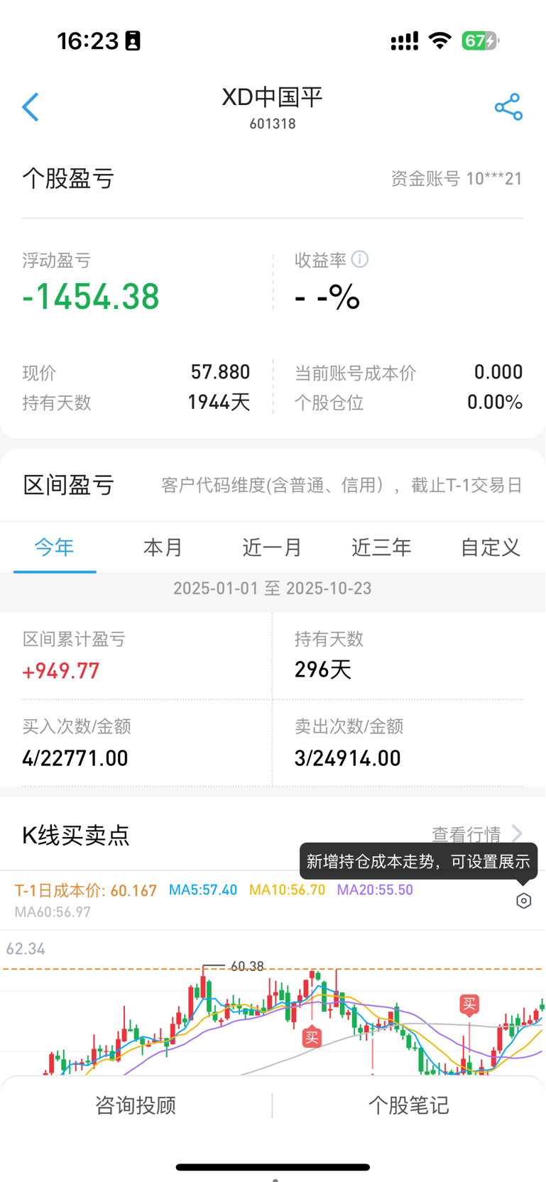 $XD中国平(SH601318)$ 五年了,从80多买到最低点30多,今天中午忍不住,割了你这个渣男,还赔一点,相当于我的漂资