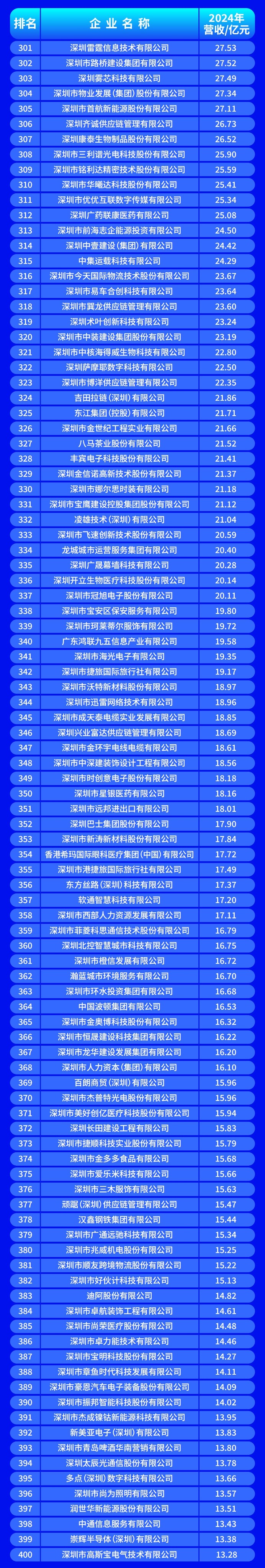 2025深圳企业500强榜单发布:平安、华为、比亚迪稳居三甲