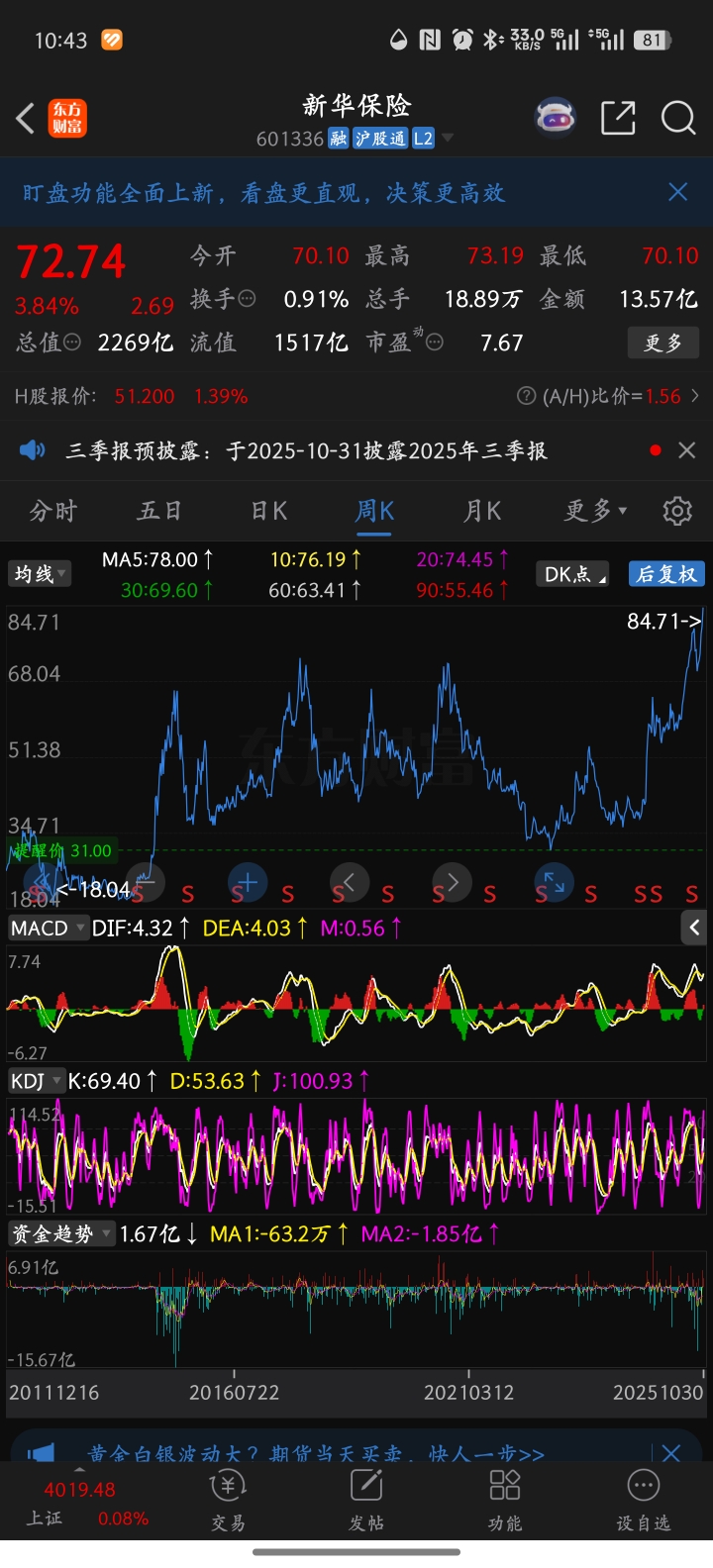 新华保险历史新高了!!!新华保险历史新高了!!!中国平安还趴在地上!!!中国平安