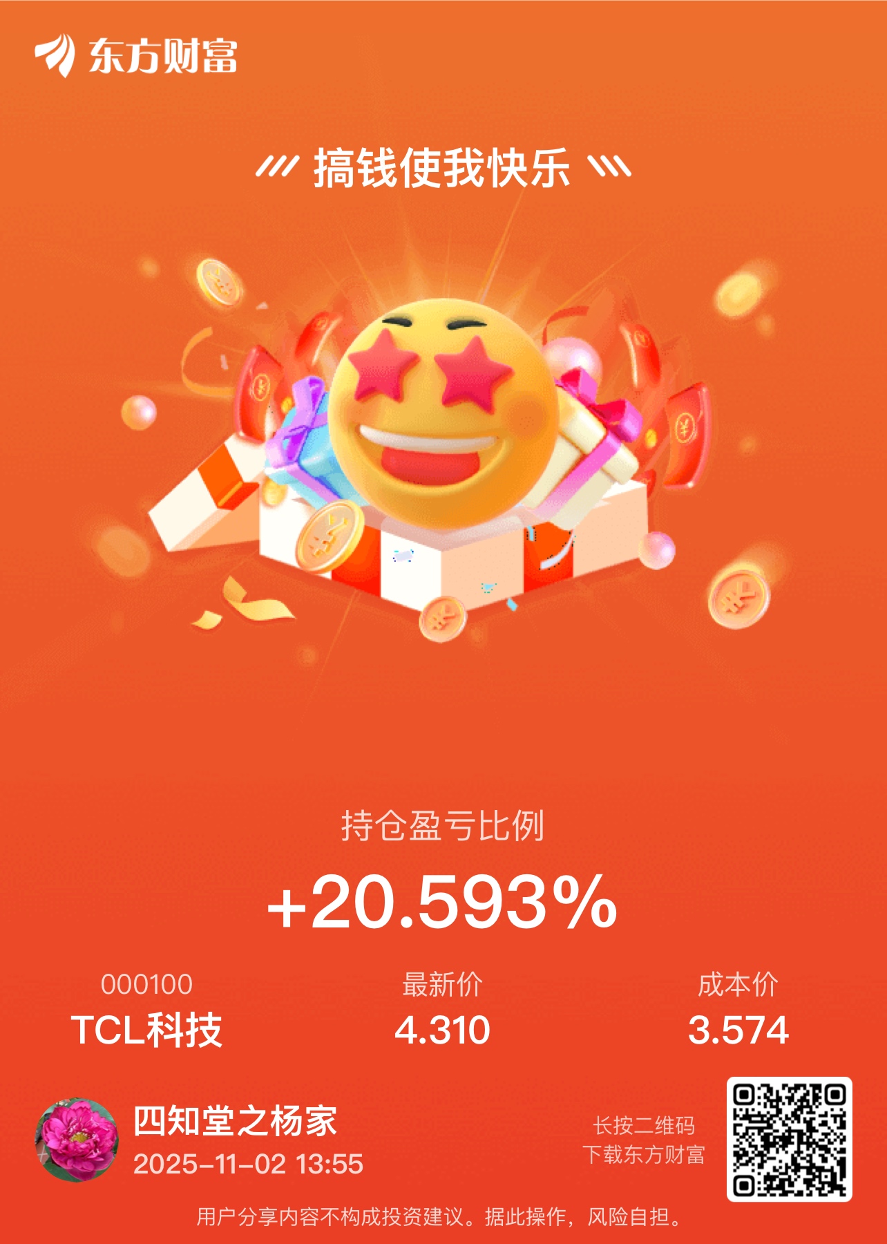 减持TCL,将4.10-4.20买入的9万股在4.37先减出。