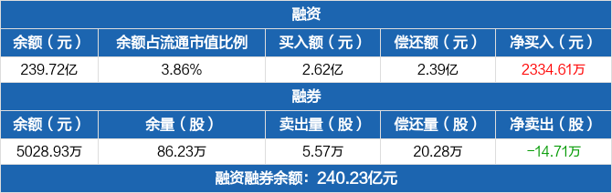 中国平安:融资净买入2334.61万元,融资余额239.72亿元(11-05)