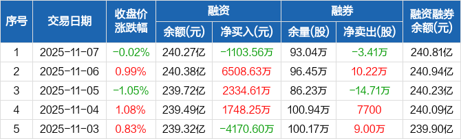 中国平安:融资净偿还1103.56万元,融资余额240.27亿元(11-07)