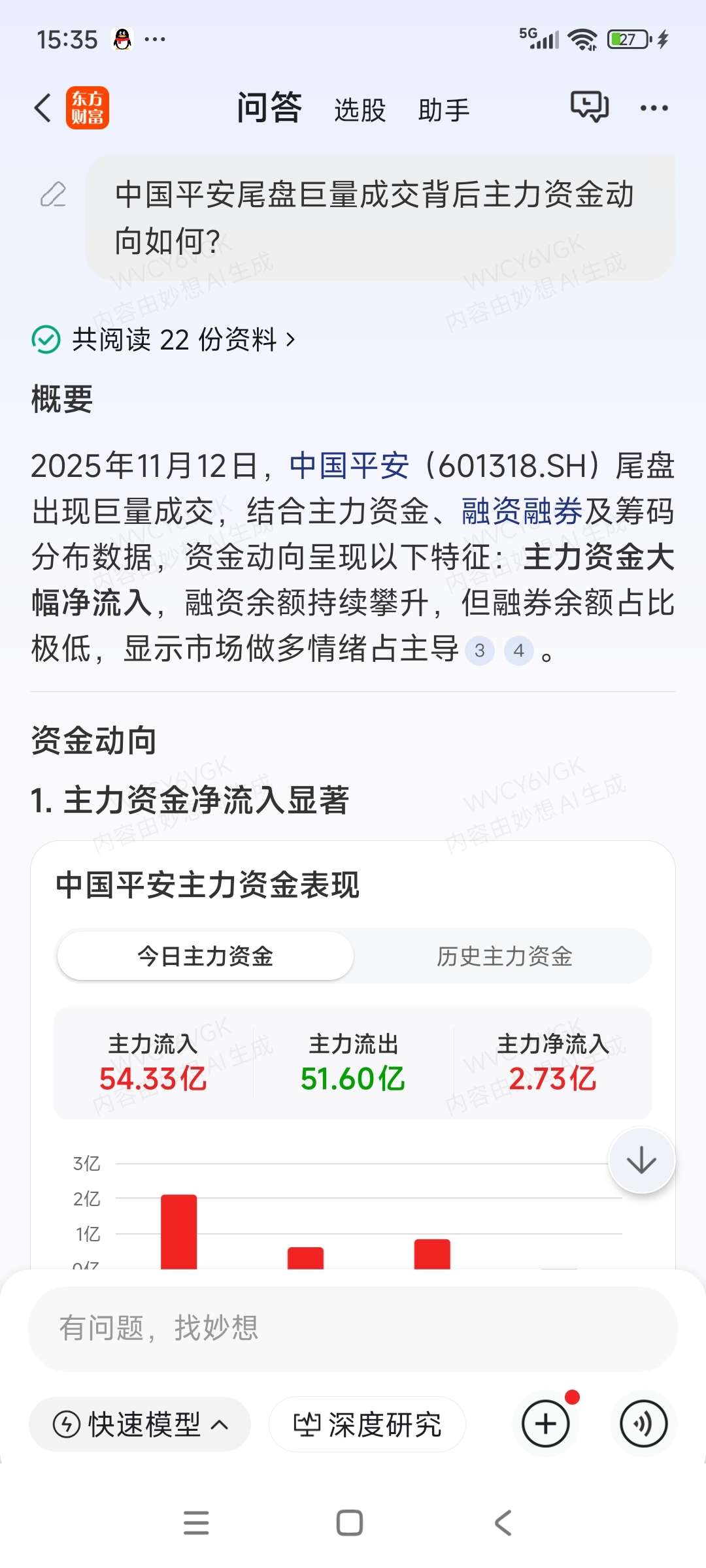 最后一分钟巨量成交,东方财富的AI妙想回答