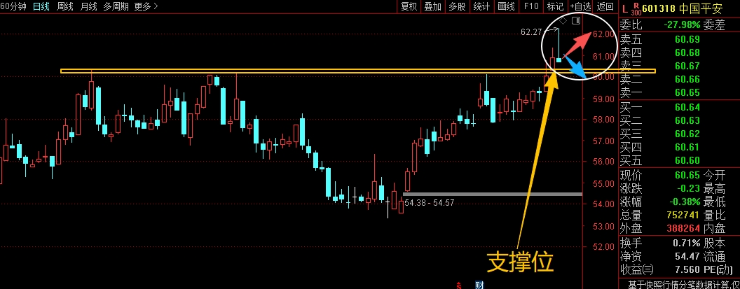 $中国平安(SH601318)$ 周五创下了近三年的新高,整体来看还是比较强的,接下来就看回落支撑的情况,如果脚底横线,也就是前高位置能稳住,那就没啥太大问题,继续震荡走高,支撑不住就要回落调整了,但整体没啥问题,只不过消耗时间吧,中期看涨,注意把握好节奏。