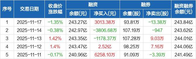 中国平安:融资净买入3013.38万元,融资余额243.27亿元(11-17)