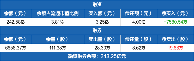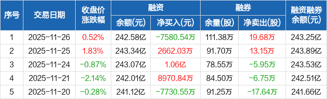 中国平安:融资净偿还7580.54万元,融资余额242.58亿元(11-26)