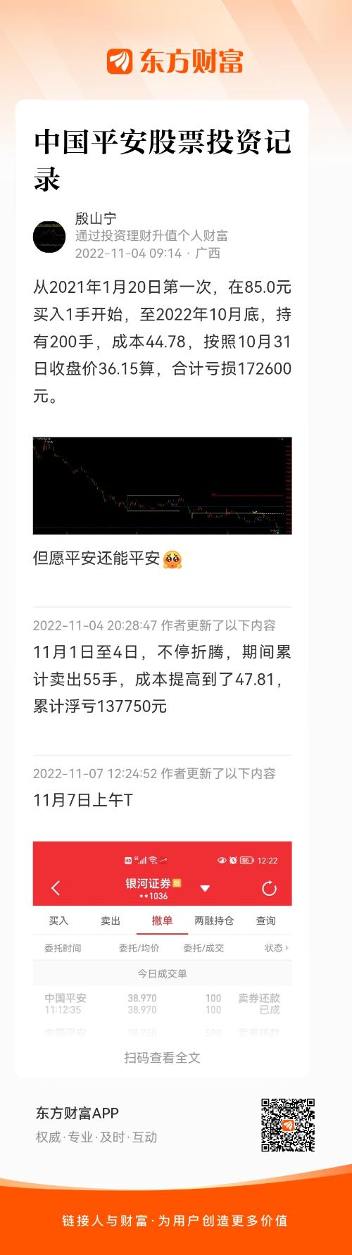 从2021年1月20日第一次,在85.0元买入1手开始,至2022年10月底,持有200手,成本44.78,按照10月31日收盘价36.15算,合计亏损172600元。
