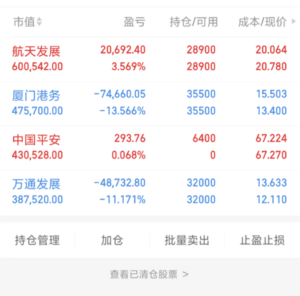 今日持有 $航天发展(SZ000547)$ 先观察一下看看有机会翻红一下下先,也做好随时随地出的准备,