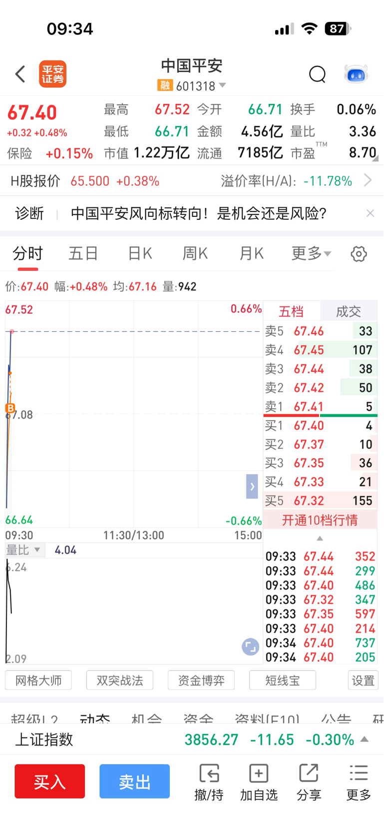 今日买入 $中国平安(SH601318)$ 观察了几天了刚好有合适的点位成功介入一手,祝各位大佬们发财!