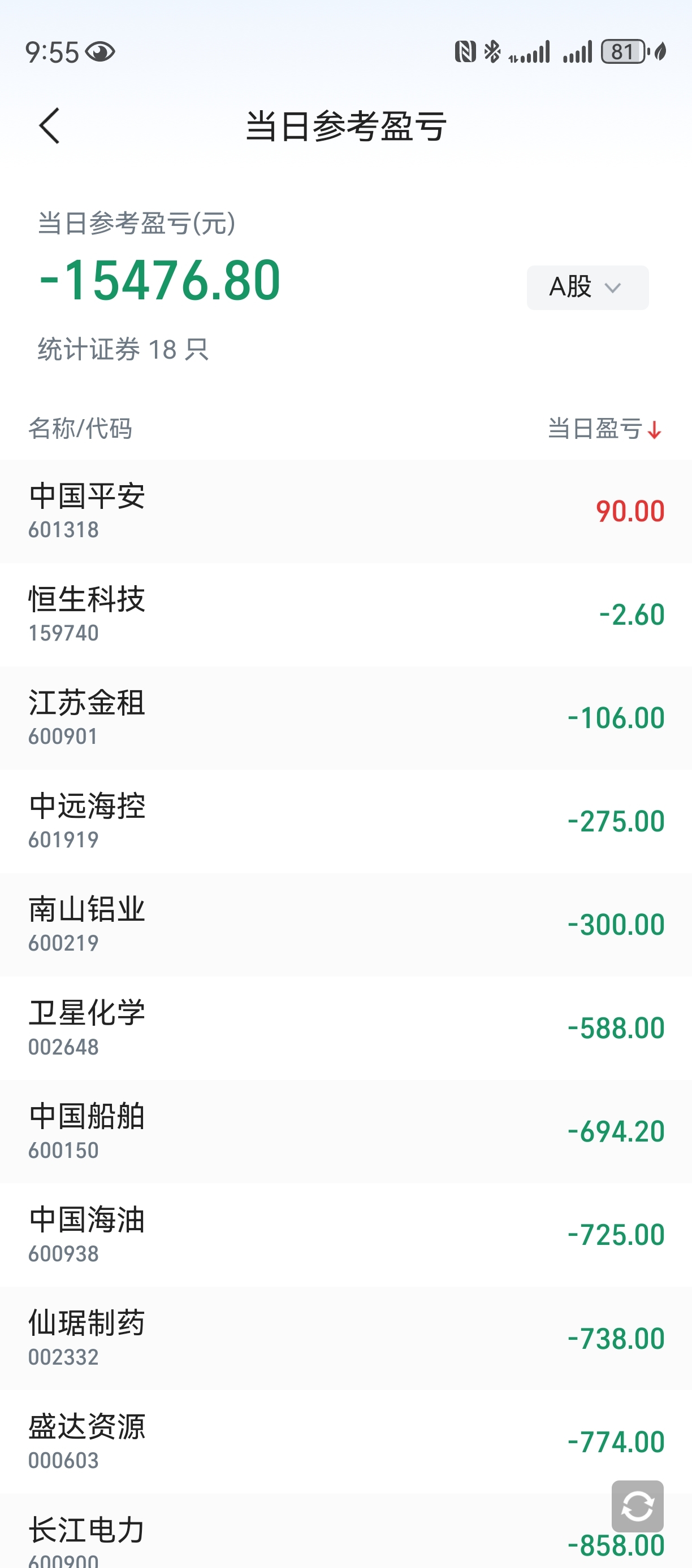$中国平安(SH601318)$ 唯一一只红的。。。