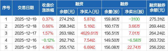 中国平安:融资余额274.21亿元,创近一年新高(12-19)