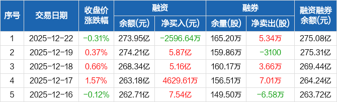 中国平安:融资净偿还2596.64万元,融资余额273.95亿元(12-22)