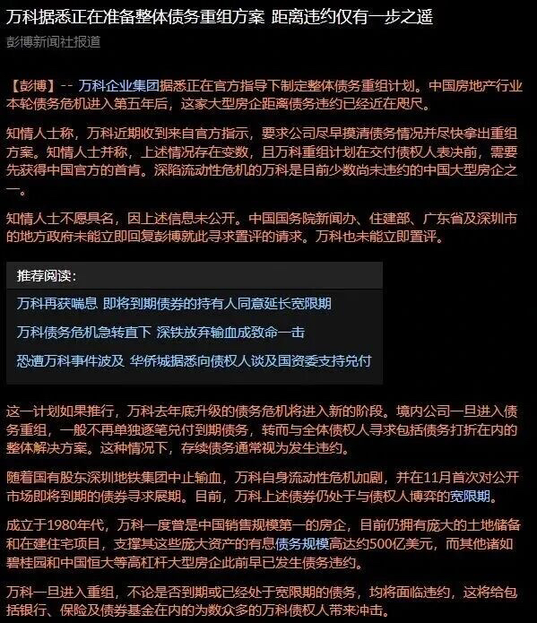 万科可能要重组,实质性债务违约,平安是否也是万科的债务人之一呢?