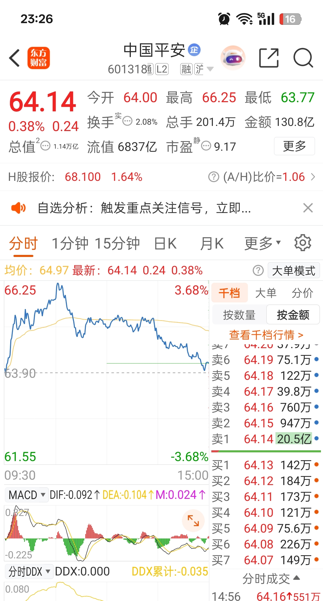 $中国平安(SH601318)$ 都几连跌了,还20.5亿压单