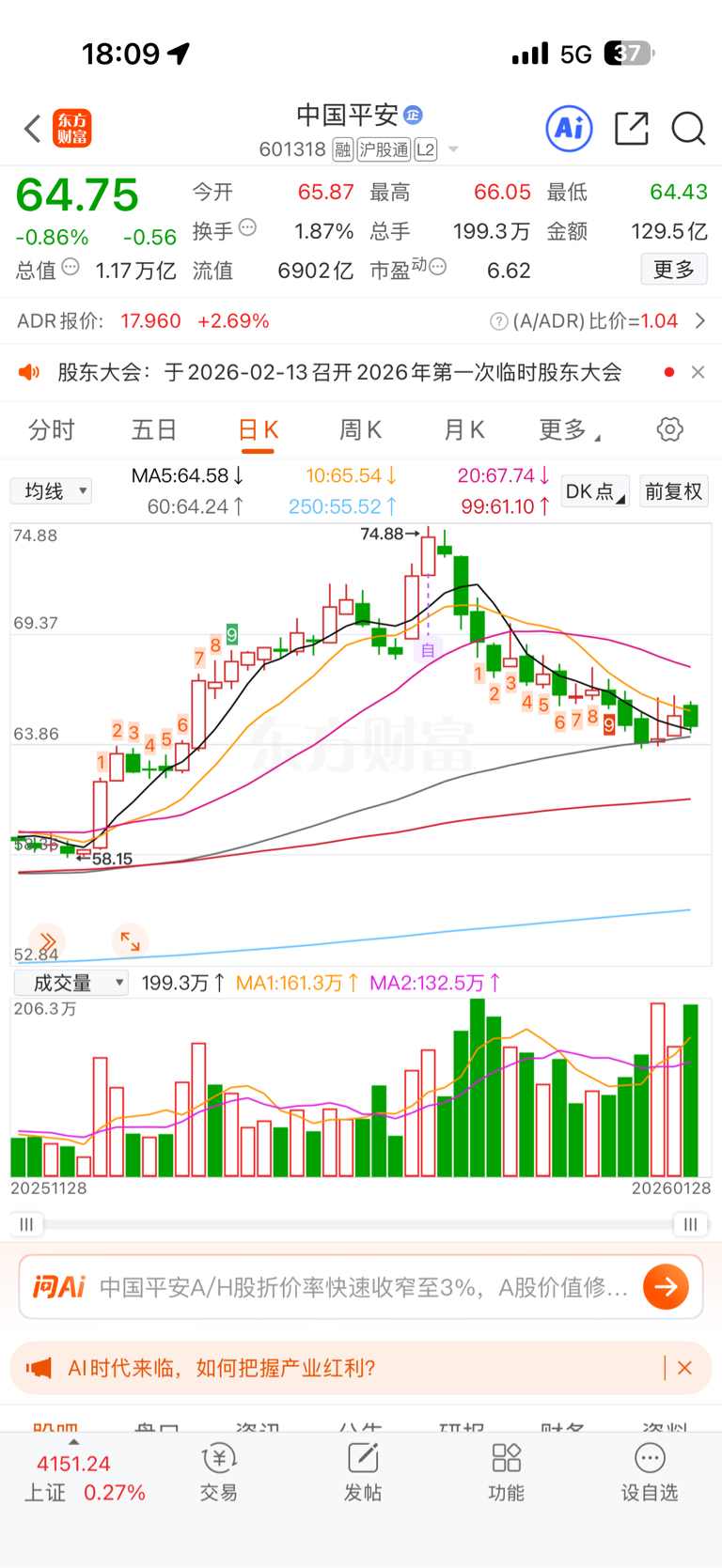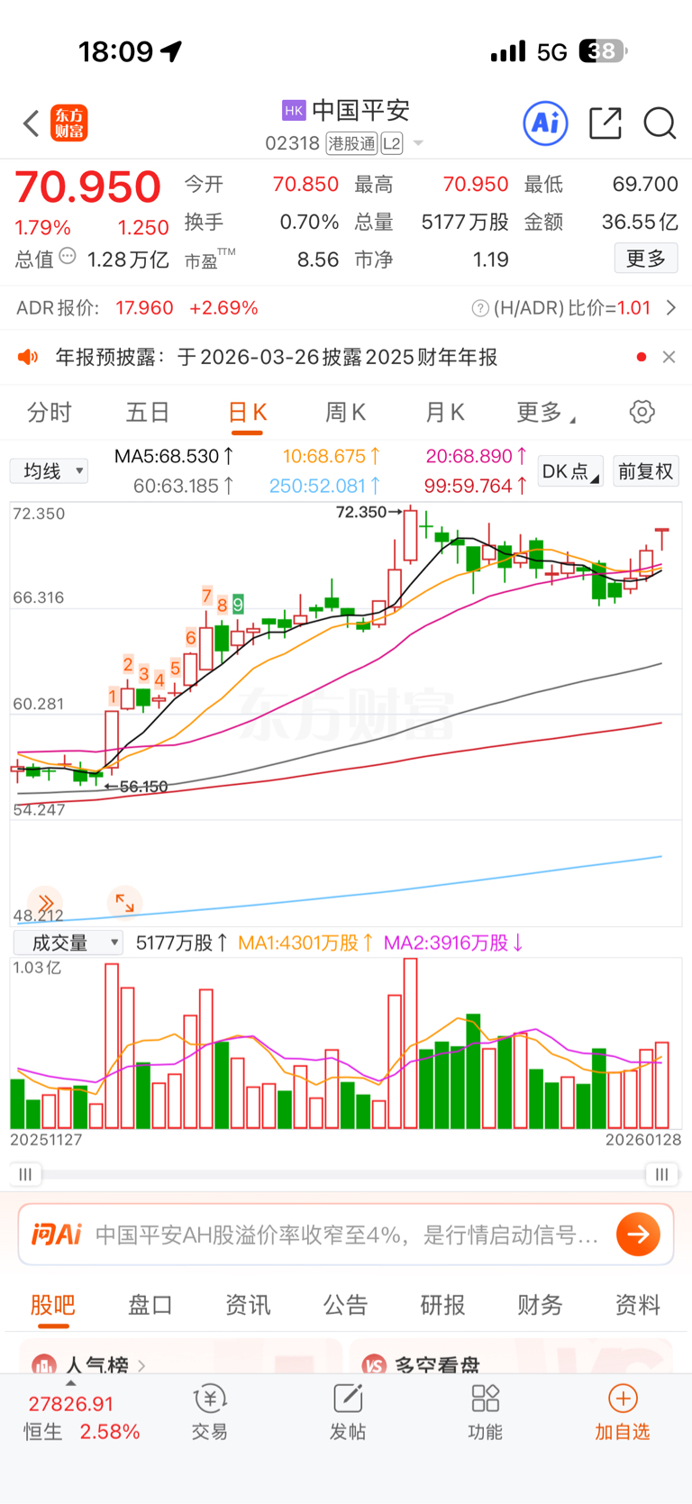 港股的中国平安超过了A股的中国平安股价,那么后面要不就是A股补涨上去,要不就是港