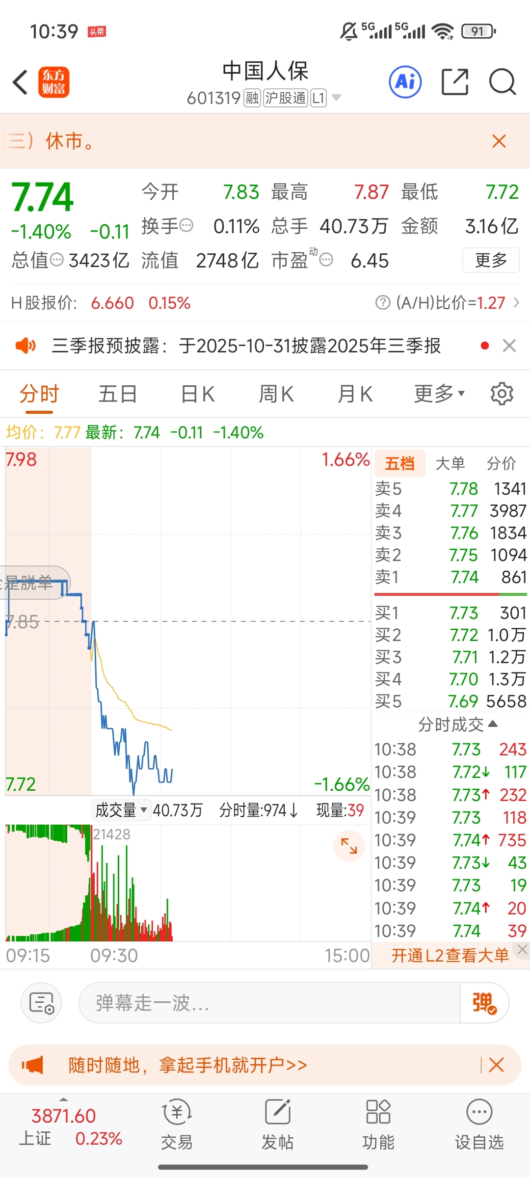 $中国人保(SH601319)$ 三万多手等着,除了国家队还能有谁