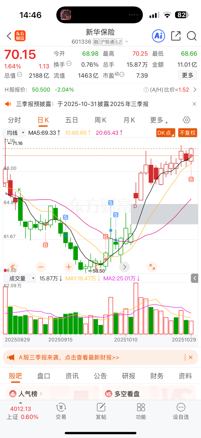 $中国人保(SH601319)$ 兄弟姐妹们速来新华 人保短期技术面资金不够 体量太大 目前新华资金活跃 突破了 想来的速来 新华保险市值A股最低保险 未来预期最大 之前我在人保熬了10个点 现在人保起不来 果断来新华做突破