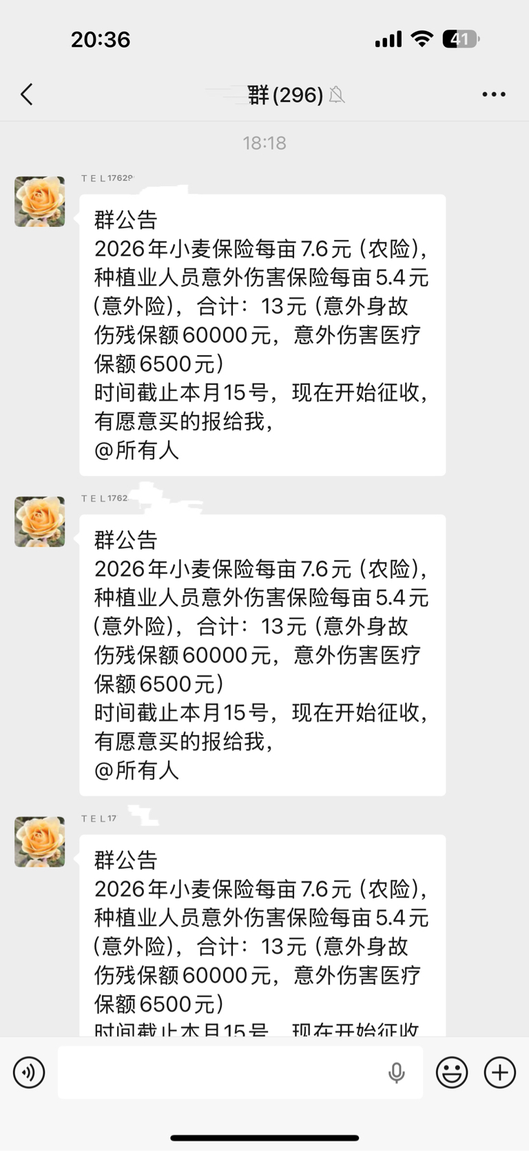 村里发通知@所有人连发几个信息,本来想开骂的一看是给保险拉广告的,而且合作单位是