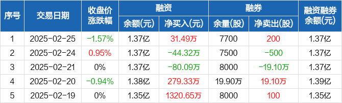 秦港股份:融资净买入31.49万元,融资余额1.37亿元(02-25)